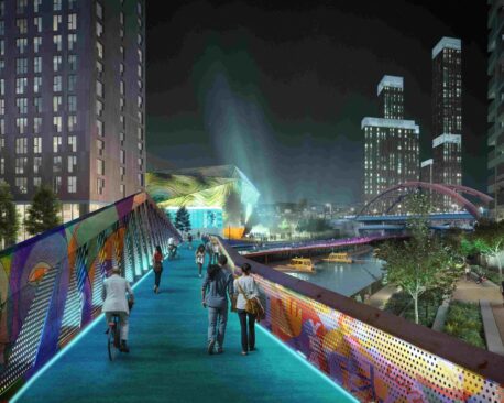 The 100-mile network will connect existing and proposed linear parks, green corridors and traffic-free walking routes and, where needed, bridge gaps by building new connections across Manchester and Salford city centres, and link to the rest of Greater Manchester’s boroughs.