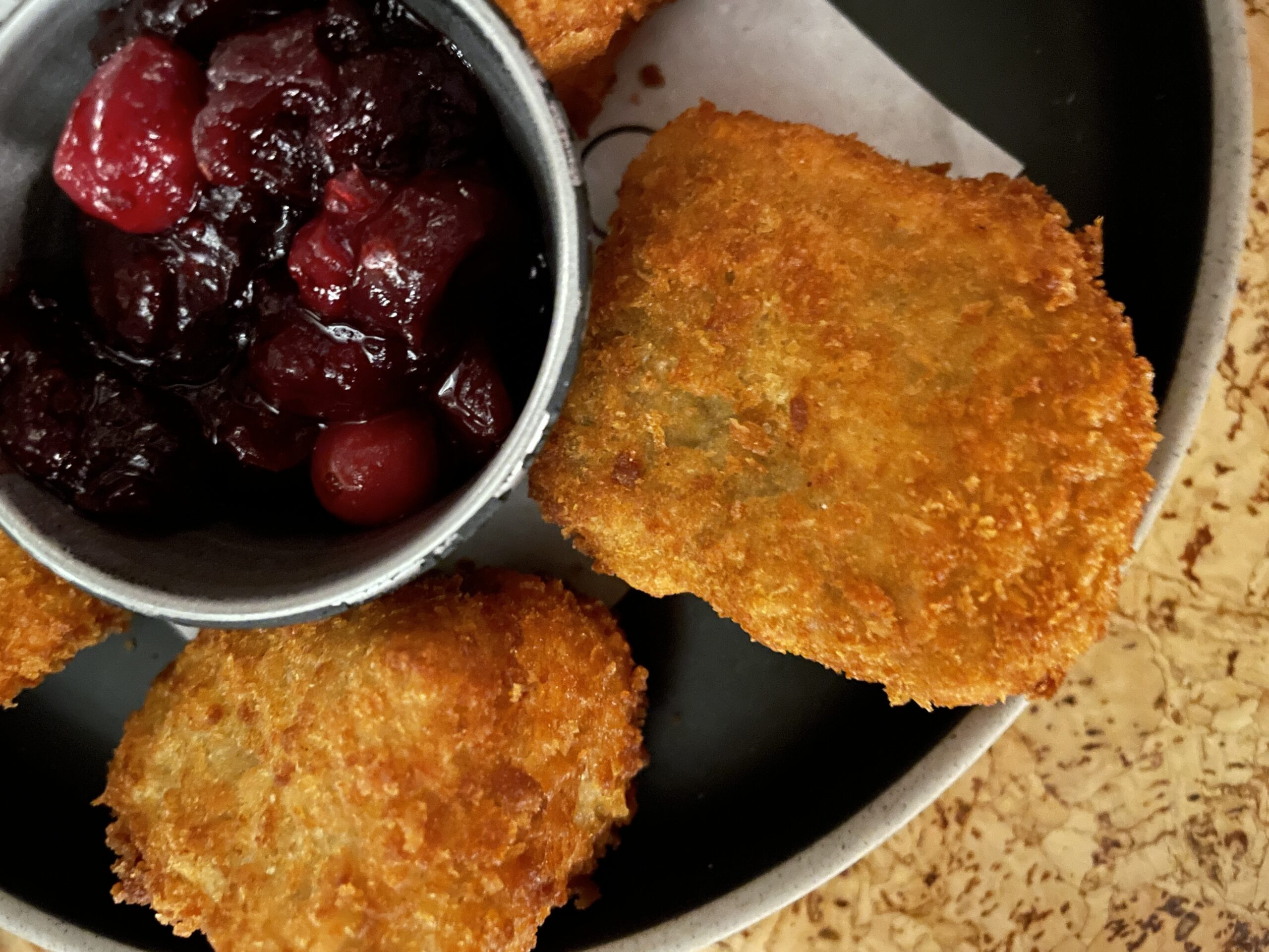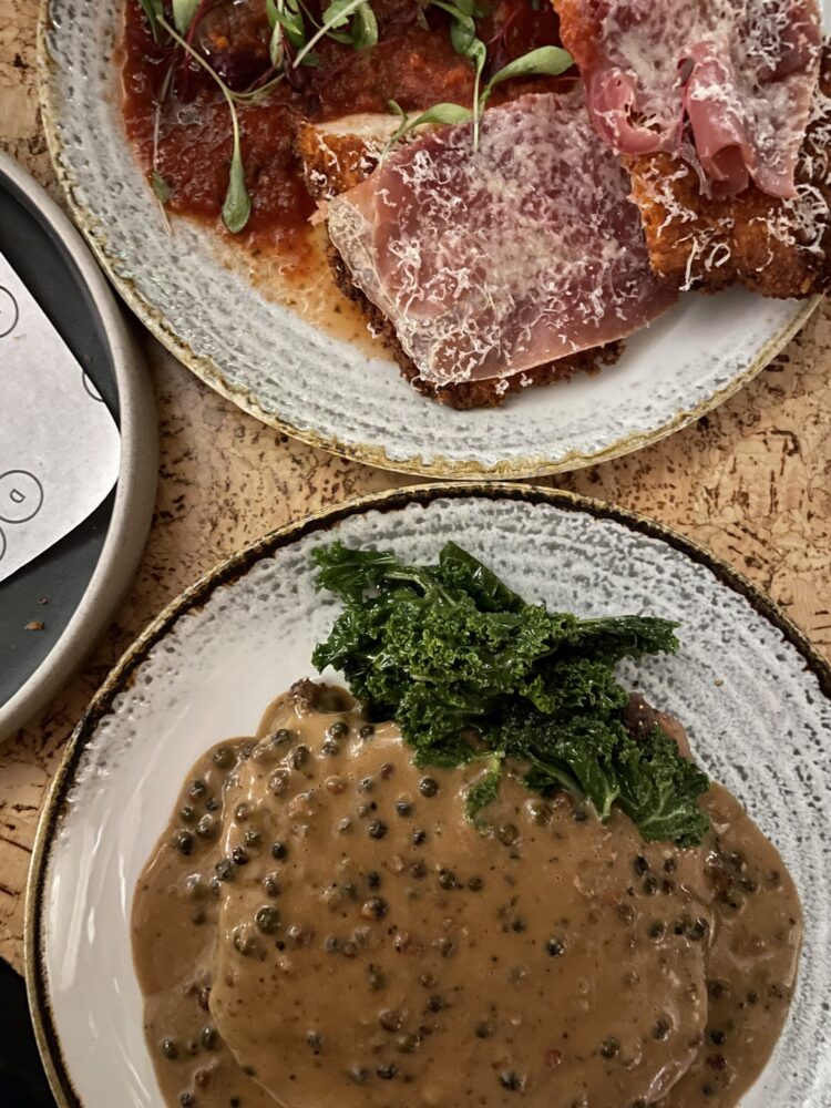 We had padron peppers, and crisp vegan cauliflower ‘wings’, ribeye with peppercorn sauce and turkey parmigiana. Espresso Martini tiramisu and mejool date sticky toffee slice with miso butterscotch and chai seed ice cream were both uplifting twists on old favourites while drinks such as Pisco Sour, Espresso Martini and the house Malbec are joyful companions.