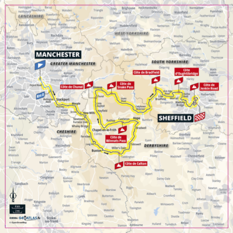 Full routes have now been revealed for the two stages of the 2027 Grand Départ as the race leaves host city Leeds, before heading through Yorkshire and into Greater Manchester, where it will weave its way through Rochdale and Oldham into Manchester city centre, before going back out of Manchester via Stockport and Derbyshire to the finish in Sheffield.