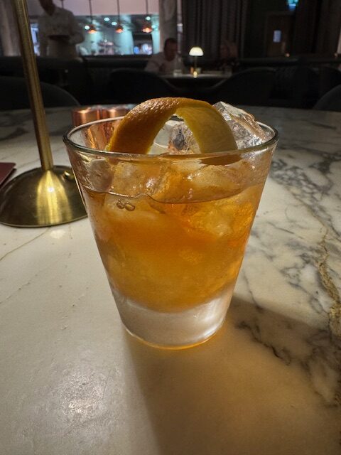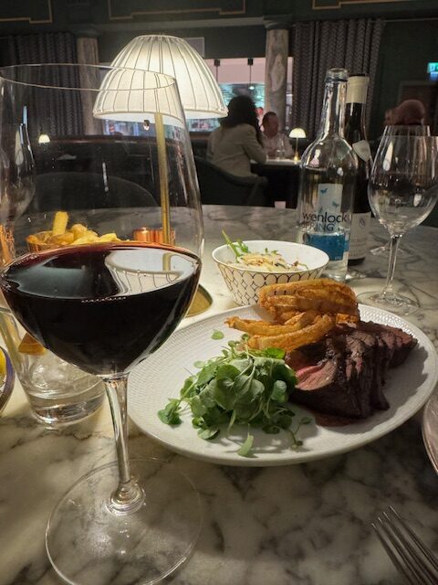 Drinks are another thrill. The bar under the restaurant is called Sterling and is run by the global award-winning team behind Schofield’s cocktail bar. Think perfect martinis and manhattans. Upstairs in the restaurant, standards are equally high. We try the house Old Fashioned before exploring a perfectly curated wine list. The sommelier’s recommendation for a bright, powerful Bourgogne from Pierre Naigeon is ideal.