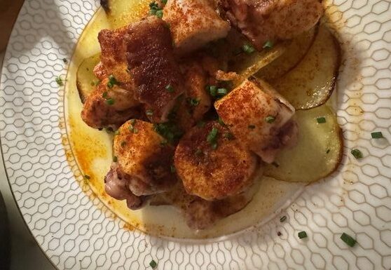 Small plate choices include charred padron peppers and Quaver-ish pork crackling. One of my favourite dishes, duck liver parfait, served with just-so brioche is typical of Keating’s elevated take on classics, as is the Galician-style octopus, enriched with smoked paprika on impossibly tender slivers of potato.