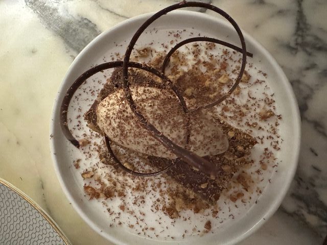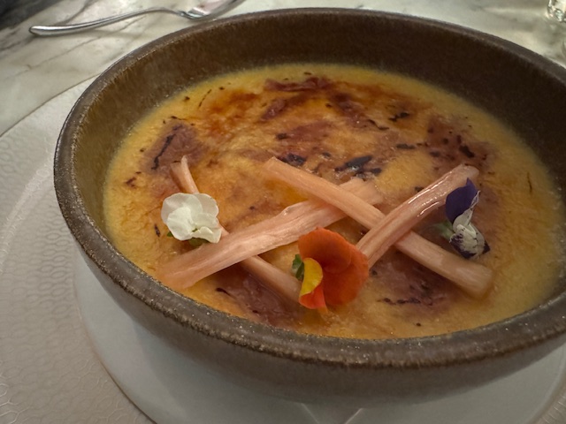 I wish we had got to try the glazed pork tomahawk, truffle duck egg, pink peppercorn roasted pineapple and pommes anna. But we loved the rhubarb crème brulee, and the walnut cake, light coffee ice cream and fancies of Valhrona dark chocolate.