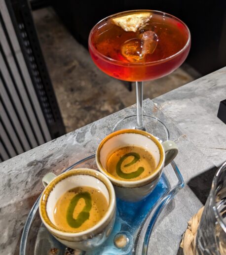 Our first cocktail, which was described as something akin to a Brazilian Negroni, is nothing short of glorious — there was almost certainly a name for it, but I was too busy proclaiming to my mate just how good it was.
