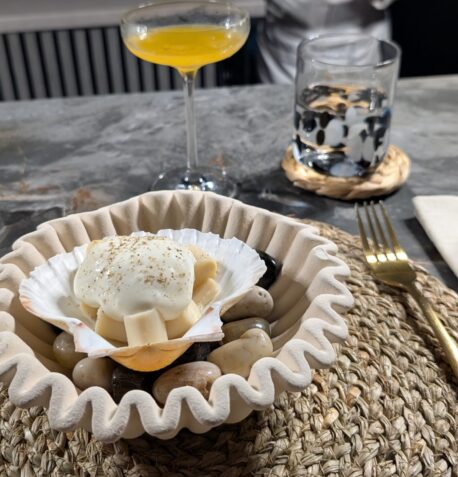 The chalkstream trout carpaccio is a standout; shimmering orange, it’s delicate and packs a fresh, briney punch. A few bites in, more smoke begins to rise from the chef’s station as the next course, a mixture of barbecued seafood, is prepared with flourish, completing an excellent fishy 1-2 combination.