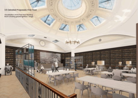 The library’s transformational Reunited project – supported by The National Lottery Heritage Fund – will see the Grade II listed building spread over three floors for the first time in over a century, creating a fully accessible and sustainable cultural library in the heart of the city.