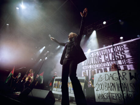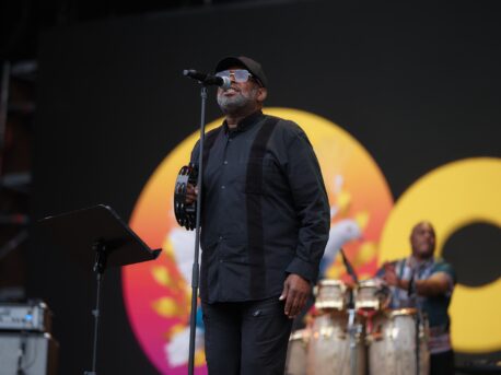 Kicking the weekend off on the festival’s main Flamingo stage were 70s British funk pioneers, Cymande, whose unique concoction of soul, jazz, calypso and reggae combine for just about the perfect opener. Shortly after, the headline-grabbing rap trio of Kneecap draw yet another massive crowd in the cavernous, aircraft-hanger-like Linné stage. Politically-charged, brimming with energy and a whole lot of fun, it doesn’t take long for their electricity to course through the crowd, who become more raucous with each track and happily oblige calls for mosh pits to be formed throughout.